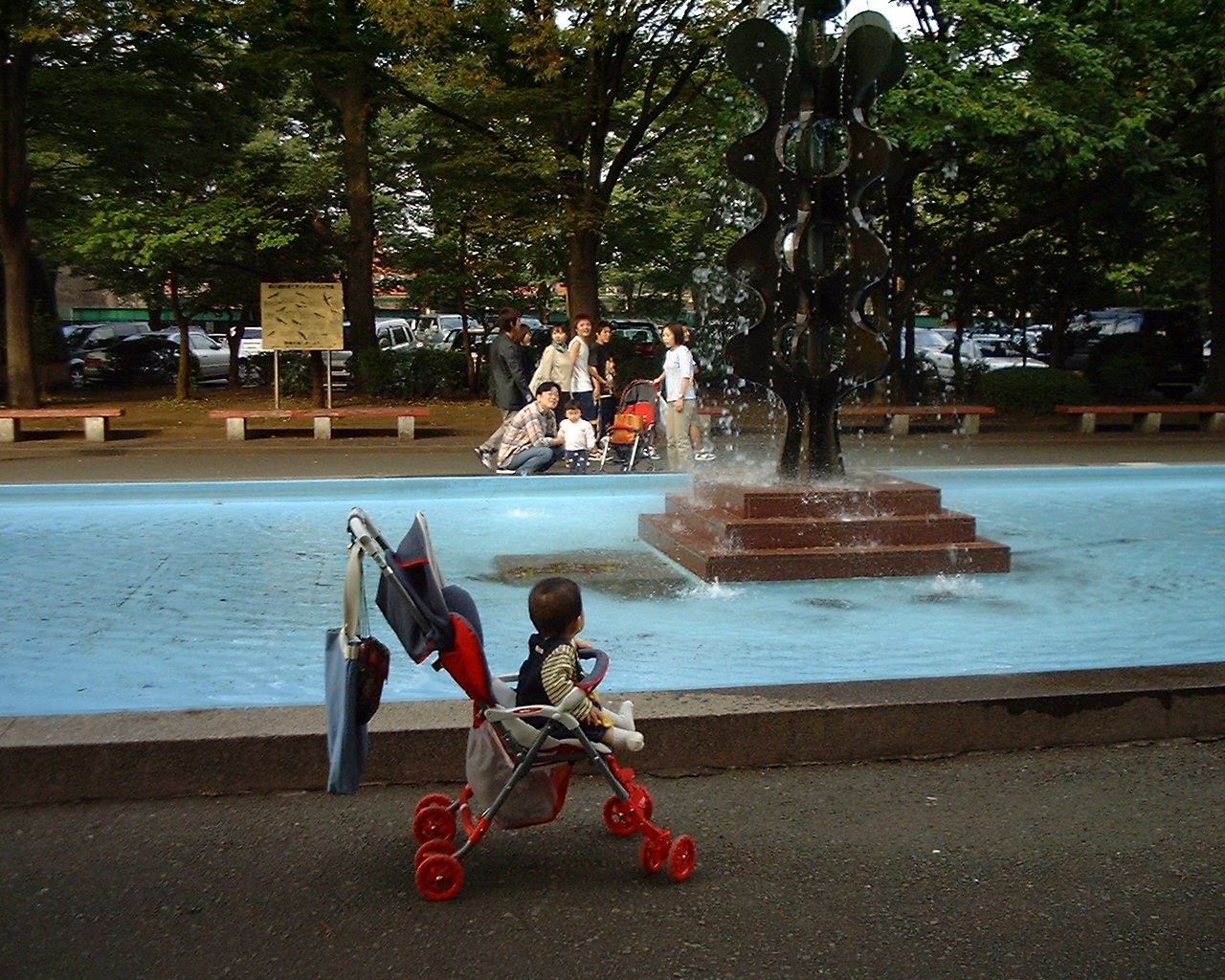 父さんの実家のそばの公園だよ。噴水に見入っちゃった。