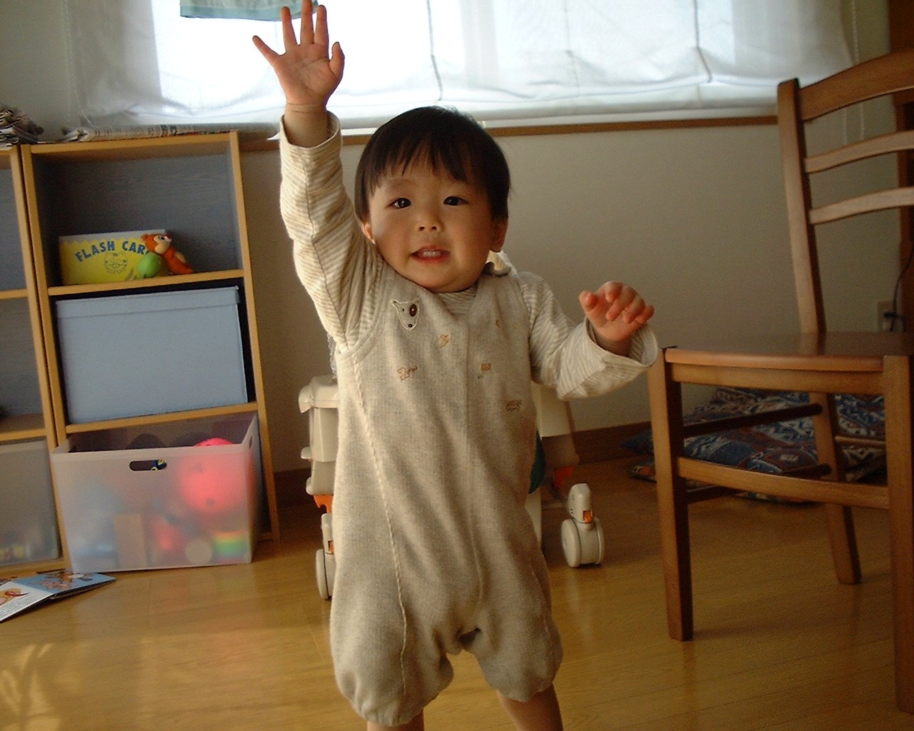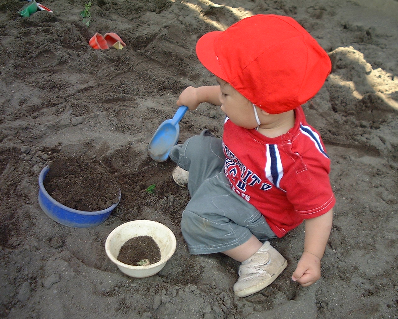 | お家が新しくなったんだ。歩くのはまだちょっとだけ。 | 節句とお家のお披露目にみんな来たよ。楽しかったんだぁ。 | 母さんが保育園の様子を見に来ました。お砂遊びしたんだ〜。 |
