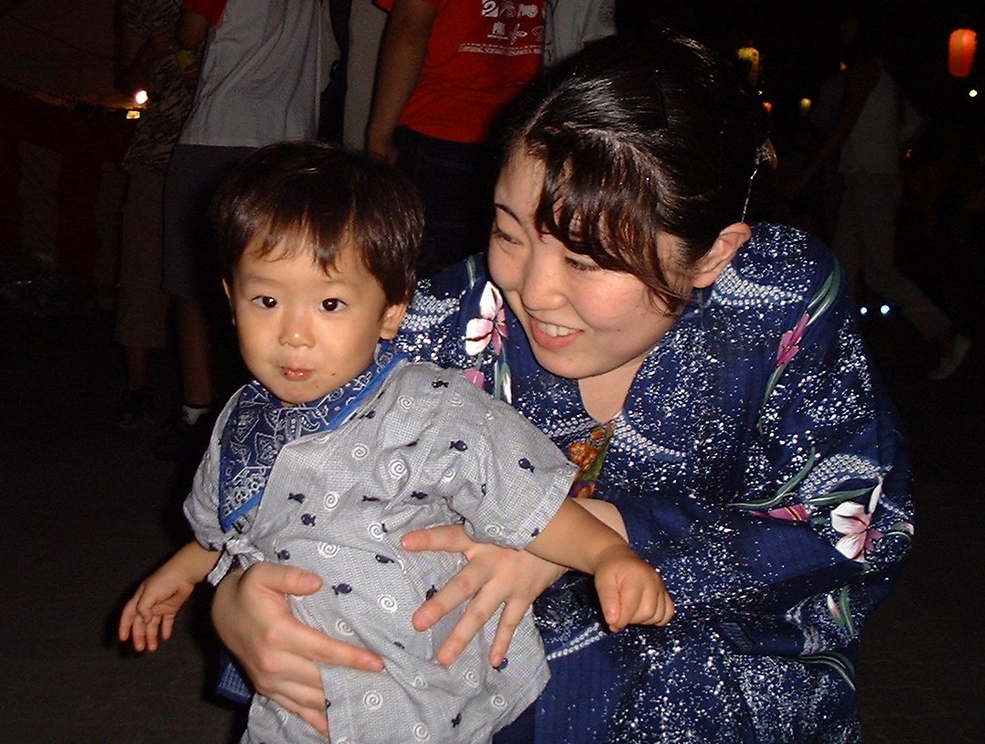 | 夏祭りに行ったよ。この写真は母さんのうつりが最優先されたみたい。 | サファリパークに行ったんだ。久しぶりの旅行だよ。 | いとこが生まれたから福岡に会いに行ったんだ。ホテルの庭がきれいだったんだ。 |
