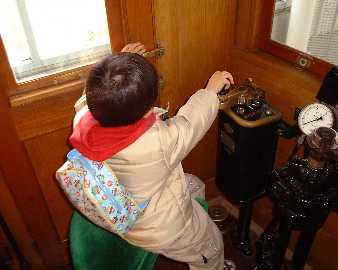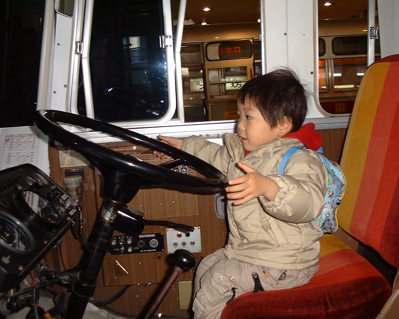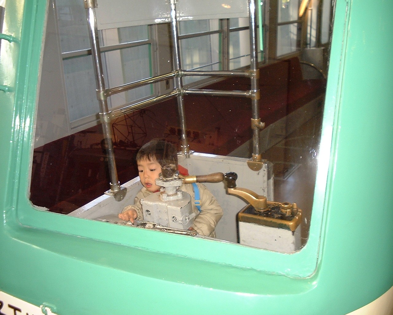 | 電車とバスの博物館に行ったよ。運転たくさんしたんだ! | 今度は電車の運転だよ | 後ろからノリノリのとこ撮られて恥ずかしい… |