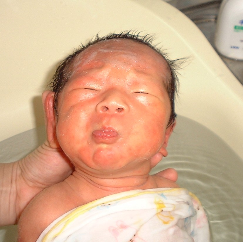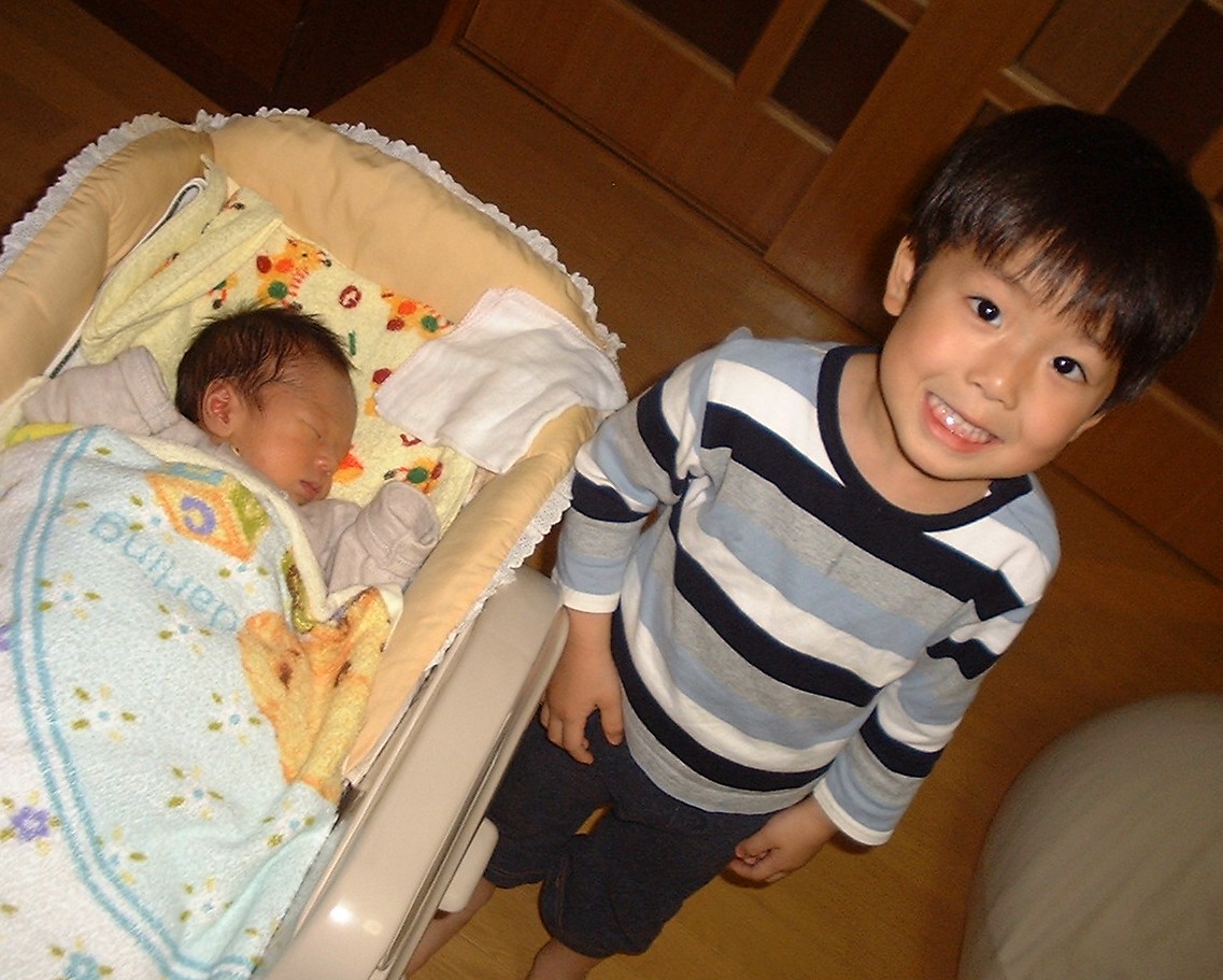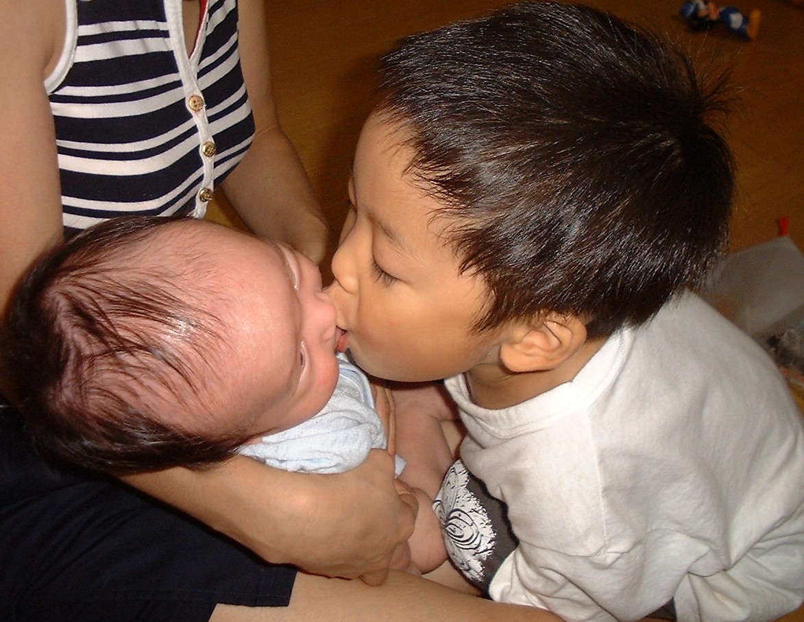 | 昨日、弟が生まれたよ。こうさっていうんだ! | こうさと2ショットだよ。今度抱っこしてる写真もとってもらおうっと。 | こうさ沐浴シーン。変顔とれてからとっちゃった☆ |
